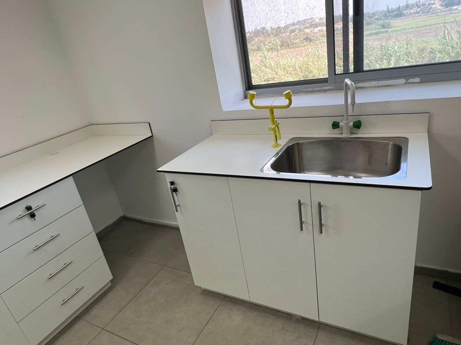 מעבר לכך, הותקן כיור נירוסטה איכותי עם ברז ייעודי ומשטפת עיניים לשמירה על בטיחות המשתמשים. לצד זאת, נוספו ארונות תלויים עם דלתות זכוכית המשלבים נוחות שימוש עם עיצוב מודרני ונקי. התוצאה היא סביבת מעבדה המעניקה לעובדים תנאים אופטימליים לעבודה יומיומית, תוך שמירה על סטנדרט גבוה של בטיחות, פונקציונליות וחדשנות.