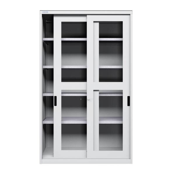 ארון אחסון ממתכת עם דלתות הזזה מפרספקס שקוף להגנה מלאה מפני אבק תוך מתן נראות מלאה של התכולה. הדלתות זמינות ביריעת מתכת מוצקה או בפרספקס, לנראות רבה יותר וסידור של הפריטים. מתאים באופן אידיאלי לאחסון חומרים בחללים סגורים, מכיוון שהם אינם בולטים בעת פתיחה. דפנות ובסיסי הארון צבועים במוצרים בעלי עמידות גבוהה, ידידותיים לסביבה. הצדדים מחורצים במרווחים של 25 מ"מ כדי לאפשר התאמה של מגירות ומדפים בהתאם. דלתות מצוידות במנעול צילינדר בטיחות ו-2 מפתחות.