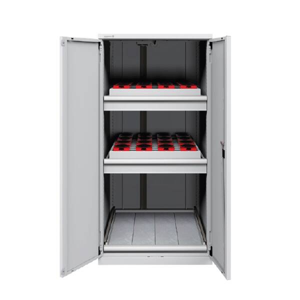 ארונית לכלים 3 מדפים – פתרון אחסון אופטימלי תוך יצירת אזור עבודה בחלק העליון של היחידה. הדרך הבטוחה ביותר לאחסן ולשלוף כלי CNC כבדים היא בתוך מערכת מגירות – גישה מ-3 הצדדים המבטלת את הצורך להיכנס פנימה, ויזואליות ברורה, עומסי עבודה בטוחים ואפשרויות גובה מתכווננות לארגונומיה אופטימלית.