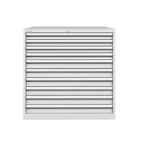 ארונית 10 מגירות 1023X572 מ"מ מפלדה איכותית עם מערכת נעילה מרכזית, מנעול צילינדר בטיחותי עם 2 מפתחות ומערכת פתיחה של מגירה בודדת.