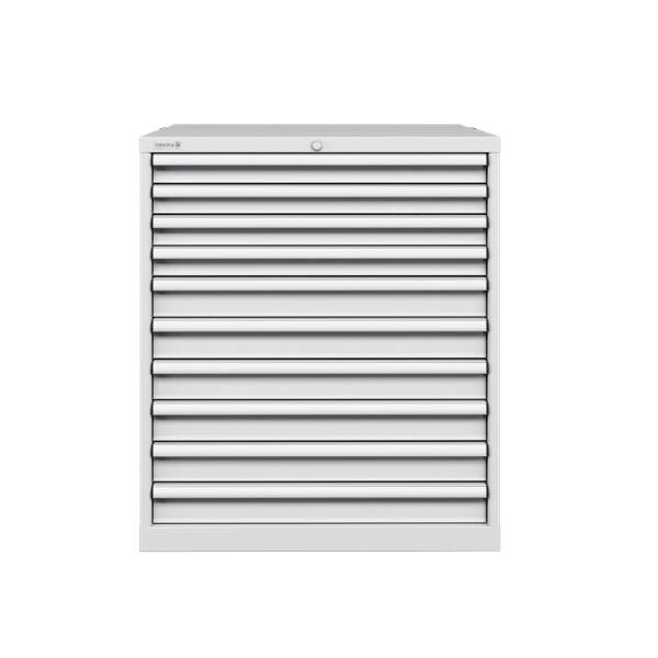 ארונית 10 מגירות 870X572 מ"מ מפלדה איכותית עם מערכת נעילה מרכזית, מנעול צילינדר בטיחותי עם 2 מפתחות ומערכת פתיחה של מגירה בודדת.