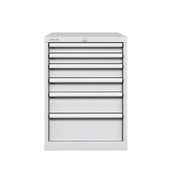 ארונית 6 מגירות 564X725 מ"מ מפלדה איכותית עם מערכת נעילה מרכזית, מנעול צילינדר בטיחותי עם 2 מפתחות ומערכת פתיחה של מגירה בודדת.