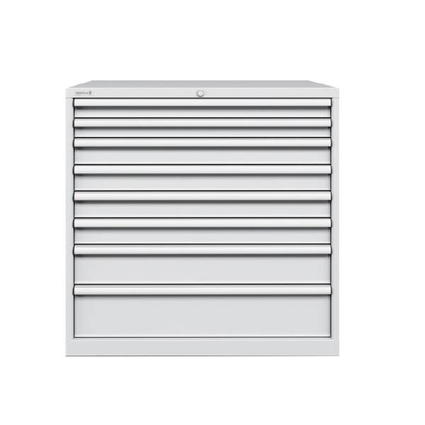 ארונית 8 מגירות 1023X725 מ"מ מפלדה איכותית עם מערכת נעילה מרכזית, מנעול צילינדר בטיחותי עם 2 מפתחות ומערכת פתיחה של מגירה בודדת.